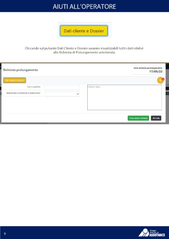 AIUTI ALL’OPERATORE Cliccando sul pulsante Dati Cliente e Dossier saranno visualizzabili tutti i dati relativi alla Richiesta di Prolungamento selezionata. 9